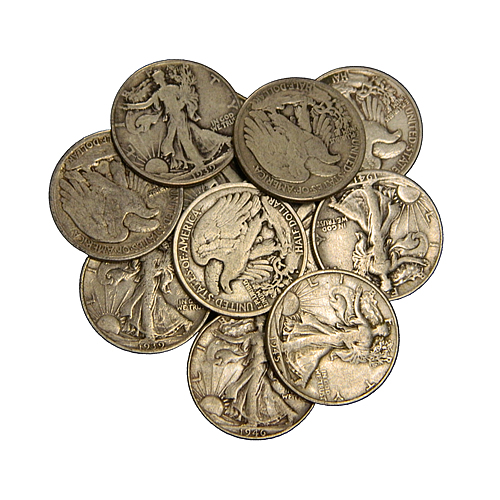 $10 Face Value Roll of Walking Liberty Half Dollars, (20) 90% Silver Coins
